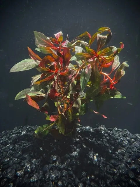 Diamond Ludwigia is a rarer Ludwigia variety with striking colour. These plants' leaves can be green on top and red underneath in low-tech circumstances, bringing a striking dimension to the mid-ground of practically any aquascape. However, when exposed to high levels of CO2 and sunshine, the leaves can entirely transform into a deep purplish red. Their vibrant hue makes an excellent focal point. The leaves of Diamond Ludwigia plants are oval and pointed, and they grow in opposing pairs along the stem. Depending on tank conditions, the leaves will be green, gold, orange, or red. When planted in bunches of 10-12 stems, these plants look fantastic.